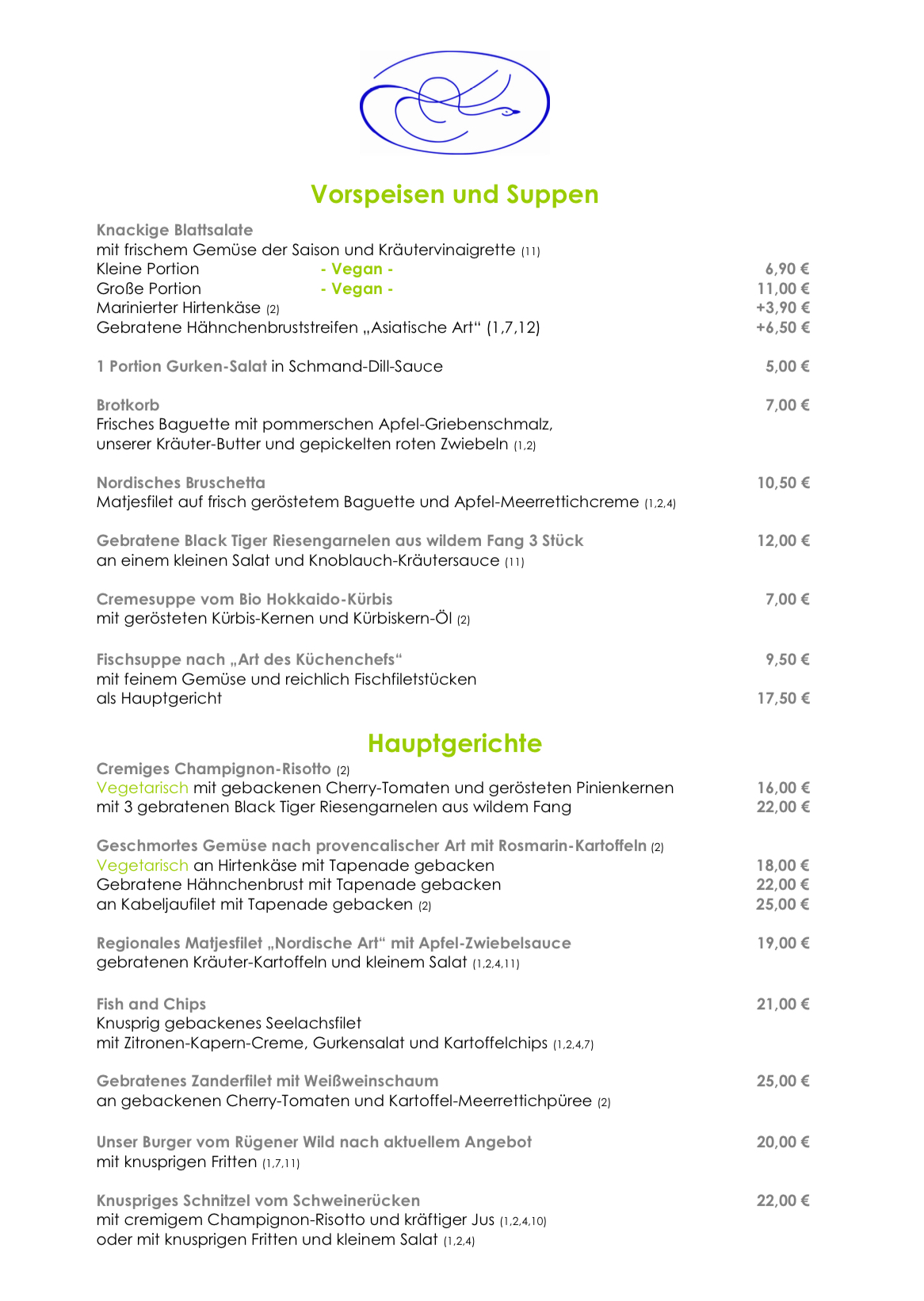 Speisekarte Restaurant Der Wilde Schwan Insel Rügen